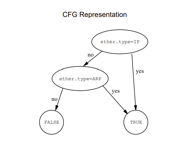 앞서 제시한 예시처럼 IP패킷 또는 ARP패킷을 필터링하고 싶을 때 CSPF의 Tree모델은 IP인지 확인하고 ARP인지 확인하고 2번의 계산을 가졌는데 CFG모델에서는 먼저 ether.type이 IP인지 확인하고 맞다면 true branch를 취하여 그대로 ACCEPT된다.